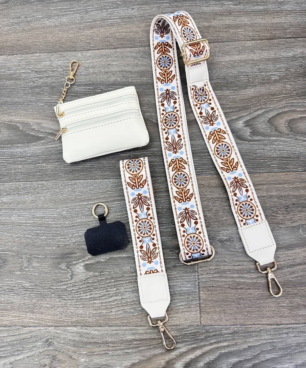 Multi functional, detachable , wristband Handbag Crossbody Strap With Phone Holder Zipper Pouch Adjustable Handbag Strap Size: 1.5"wide Shortest Strap Length:41" Longest Strap Length: 57"